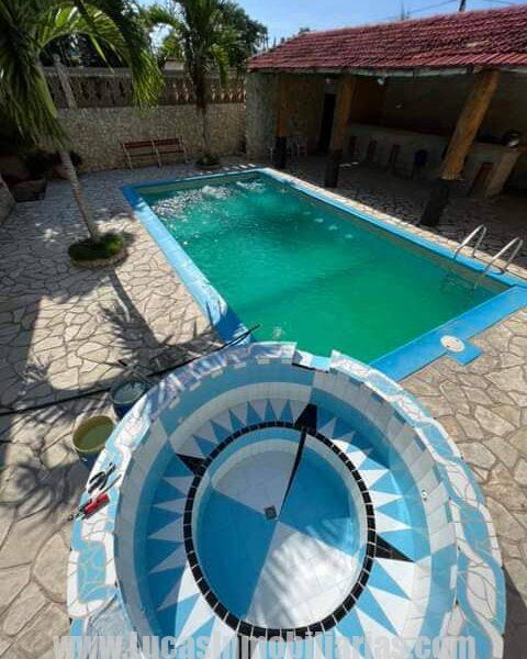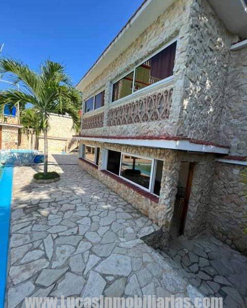 Completamente enchapada en piedras para protegerla de la corrosion del mar con una gran piscina y su bar-ranchon.