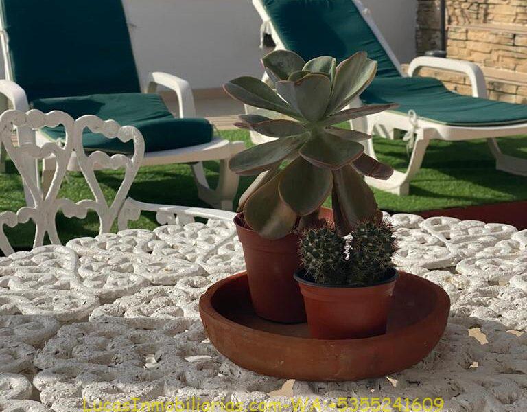 Terraza grande con parte techada y parte no techada con una pequena Piscina-Jacuzzi con agua caliente 24 horas.