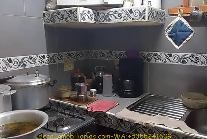 Cocina con horno, batidora, olla reina,  arrocera, cafetera electrónica, tv, lavadora, dos camas una 3/4 y otra camera, dos clóset, un juego de muebles, apliques en fin todo.