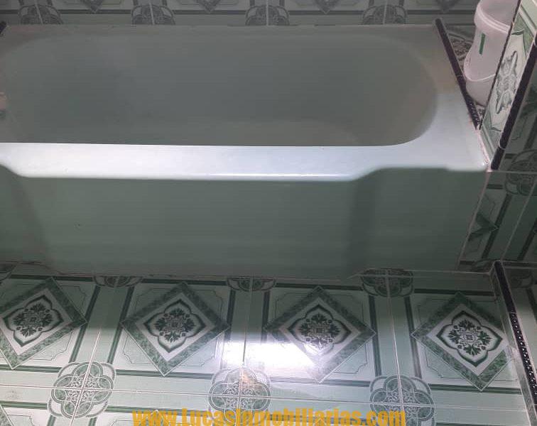 Enchapado piso y meseta moderna el primer cuarto de 4x4 el 2 cuarto 4x4, baño intercalado con bañadera antigua esmaltada azulejiado moderno.