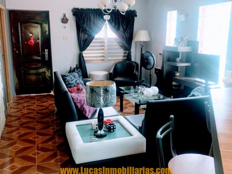 Portal,sala amplía, cocina, barra, comedor, tres habitaciones, bańo, terraza grande y área de servicio