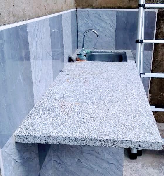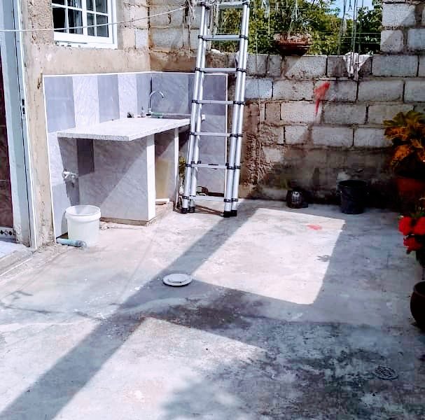 Tiene dos mesetas terminadas pero la del portal de atr谩s le falta hechar la placa y repellar este portal